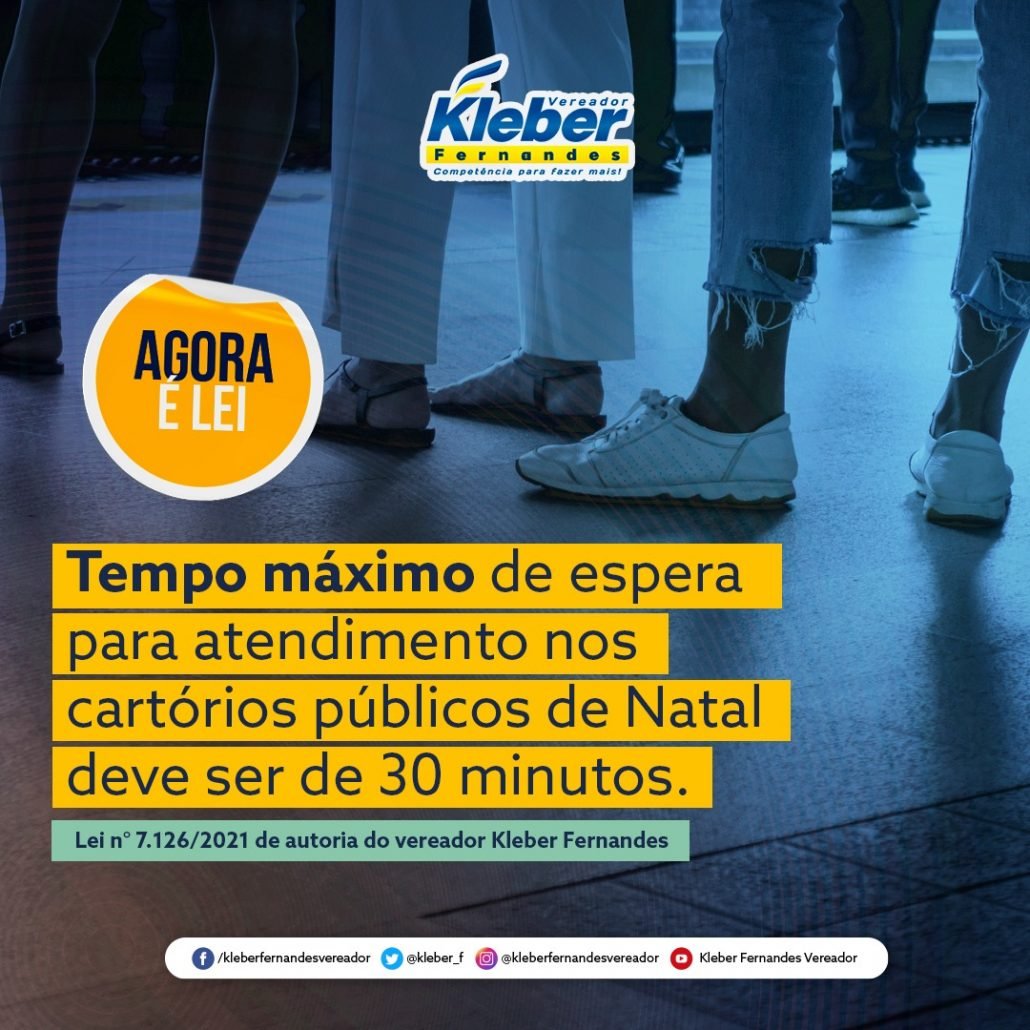 A lei, de autoria do vereador Kleber Fernandes, determina tempo máximo de 30 minutos para início do atendimento em cartórios públicos de Natal A partir de agora o tempo de espera para início de atendimento nos cartórios públicos de Natal deve ser de no máximo 30 minutos. É o que determina a Lei n° 7.126/2021, […]
